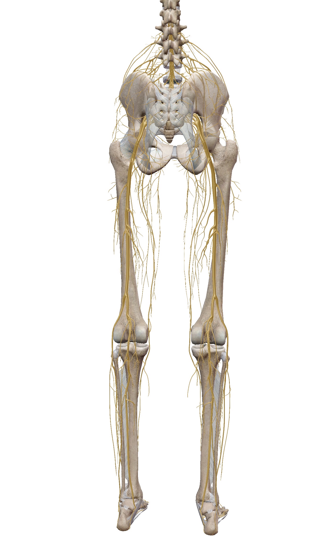 🔹 เส้นประสาทจากหลัง L4–S1 → รวมตัวเป็น “เส้นประสาทไซอาติก (Sciatic nerve)”